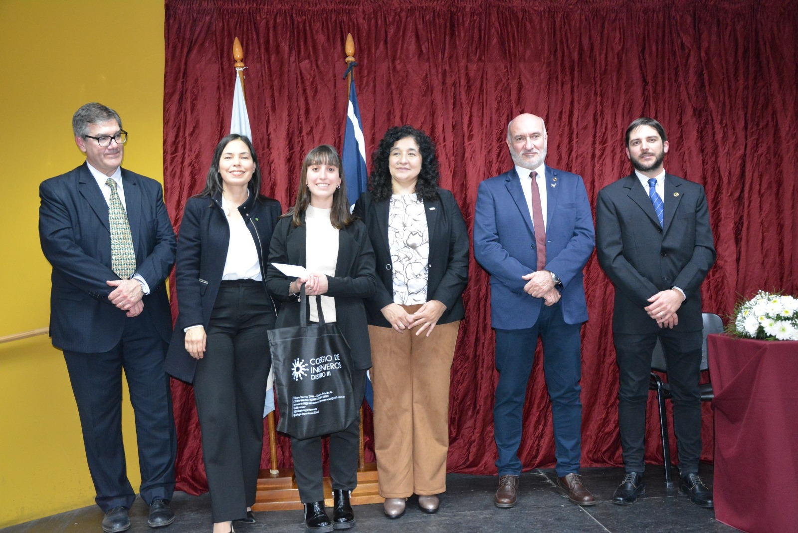 Durante el evento, la vicedecana de la Facultad de Ingeniería, Ing. Silvana Gobbi, y la Ing. Nancy P. Fernández, directiva del Colegio de Ingenieros de la Provincia de Buenos Aires DIII, realizaron la entrega de menciones especiales a los mejores promedios de las carreras de ingeniería, reconociendo la excelencia académica de los siguientes graduados y graduadas: